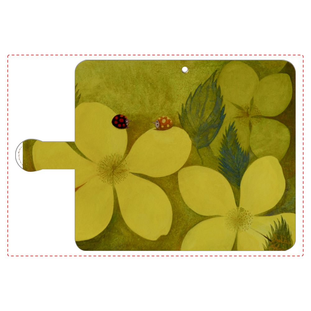 心を込めたデザイン「てんとう虫と黄色い花 手帳型ベルト付きアンドロイドM」